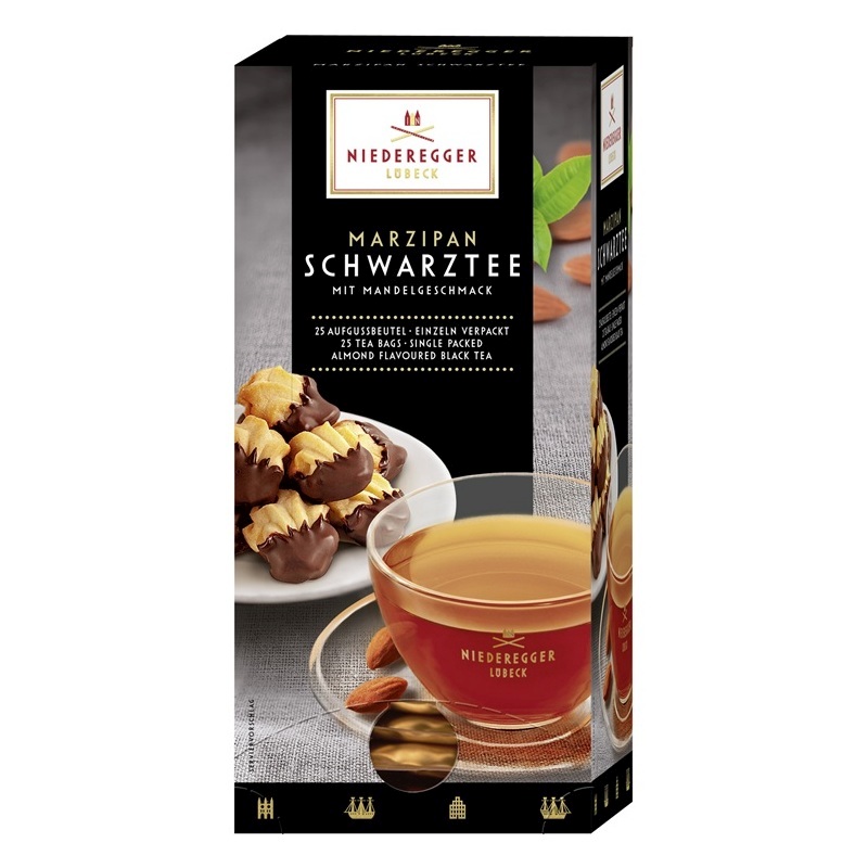 Produktinformationen "NIEDEREGGER MARZIPAN SCHWARZTEE 25 X 1.75G"