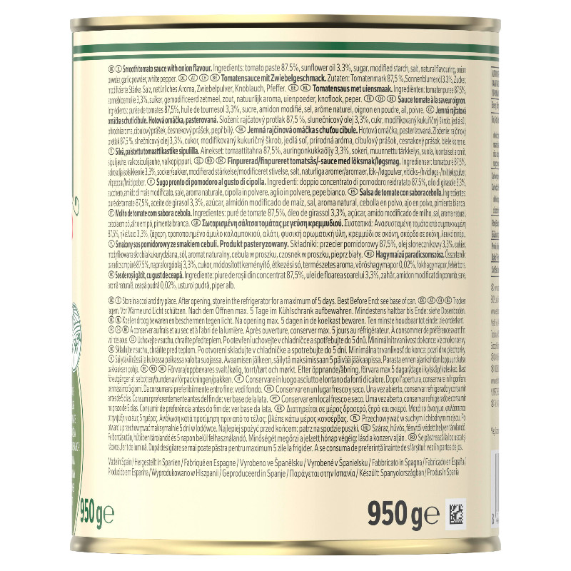 Zutaten: Tomatenmark 87,5 %, Sonnenblumenöl 3,3%, Zucker, modifizierte Stärke, Salz, natürliches Aroma, Zwiebelpulver, Knoblauch, Pfeffer
