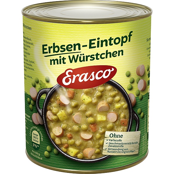 Produktinformationen "ERASCO ERBSEN EINTOPF MIT WUERSTCHEN 800G"