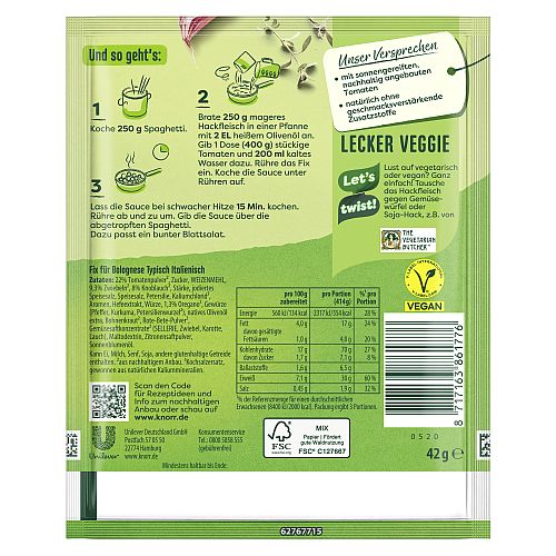 Produktinformationen "KNORR FIX BOLOGNESE TYPISCH ITALIENISCH! 42G"