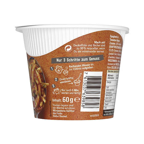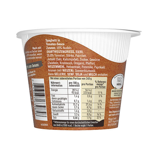 Produktinformationen "MAGGI 5 MINUTEN TERRINE SPAGHETTI MIT TOMATENSAUCE 60G"