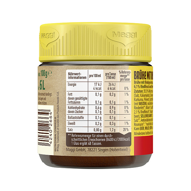 Produktinformationen "MAGGI BRUEHE MIT RIND 108G ERG. 6L"
