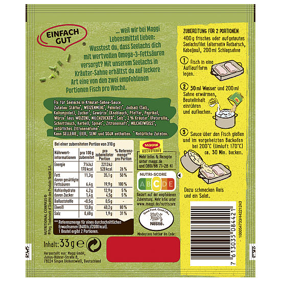 Produktinformationen "MAGGI FIX SEELACHS I KRAEUTER SAHNE 33G"