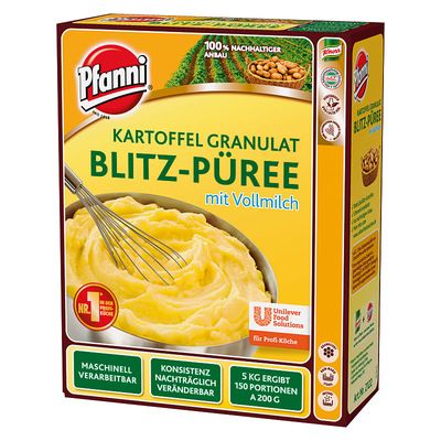 Produktinformationen "PFANNI KARTOFFEL GRANULAT BLITZ - PUEREE MIT VOLLMILCH ERG. 150 PORTIONEN Á 200G 5 KG"