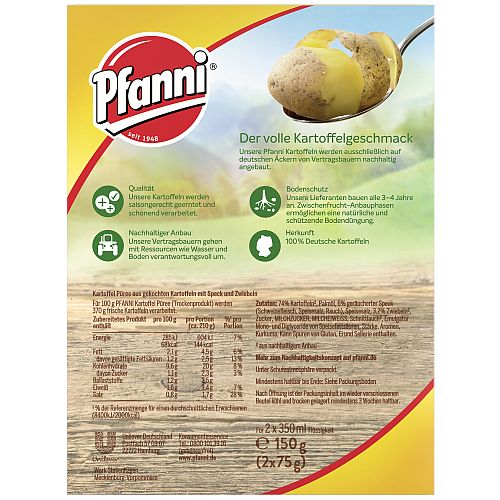Produktinformationen "PFANNI KARTOFFEL PUEREE MIT RAEUCHERSPECK & ZWIEBELN 150G"