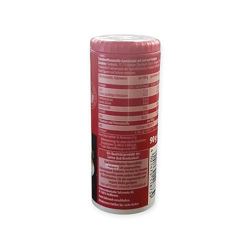 Das Bad Reichenhaller Tomaten-Mozzarella Salz in der praktischen 90g Dose verleiht Ihren Gerichten eine mediterrane Note. Ideal für Caprese, Salate, Pasta und viele weitere Speisen. Ohne Geschmacksverstärker, vegan und glutenfrei – für natürlichen Genuss in bester Qualität. in der praktischen 90g Dose verleiht Ihren Gerichten eine mediterrane Note. Ideal für Caprese, Salate, Pasta und viele weitere Speisen. Ohne Geschmacksverstärker, vegan und glutenfrei – für natürlichen Genuss in bester Qualität.